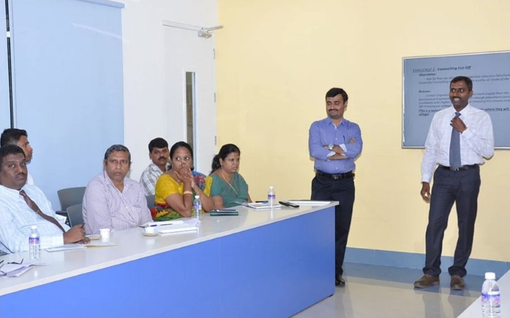 The training and placement team believes in the thought, “The outcome of education is apparent when careers sharpen your horizons” and we strive every minute working on it. Students’ skills are molded through multifarious training sessions that include technical, aptitude, verbal and soft skill. By understanding their level of grasping and delivering, the students are trained individually, based on their needs. To keep pace with the world, multiplicity of career is essential and that drives us to provide training and guidance for those who aspire to crack the competitive exams. The ambience in Training and Placement department is an inspiration, for its spatial dimensions of Interview cubicles, Group Discussion halls and Guest Lounge that render students a complete professional environment to learn and equip. A team of passionate staff work with a single motive for upgrading the students to the next phase of life by all possible means.